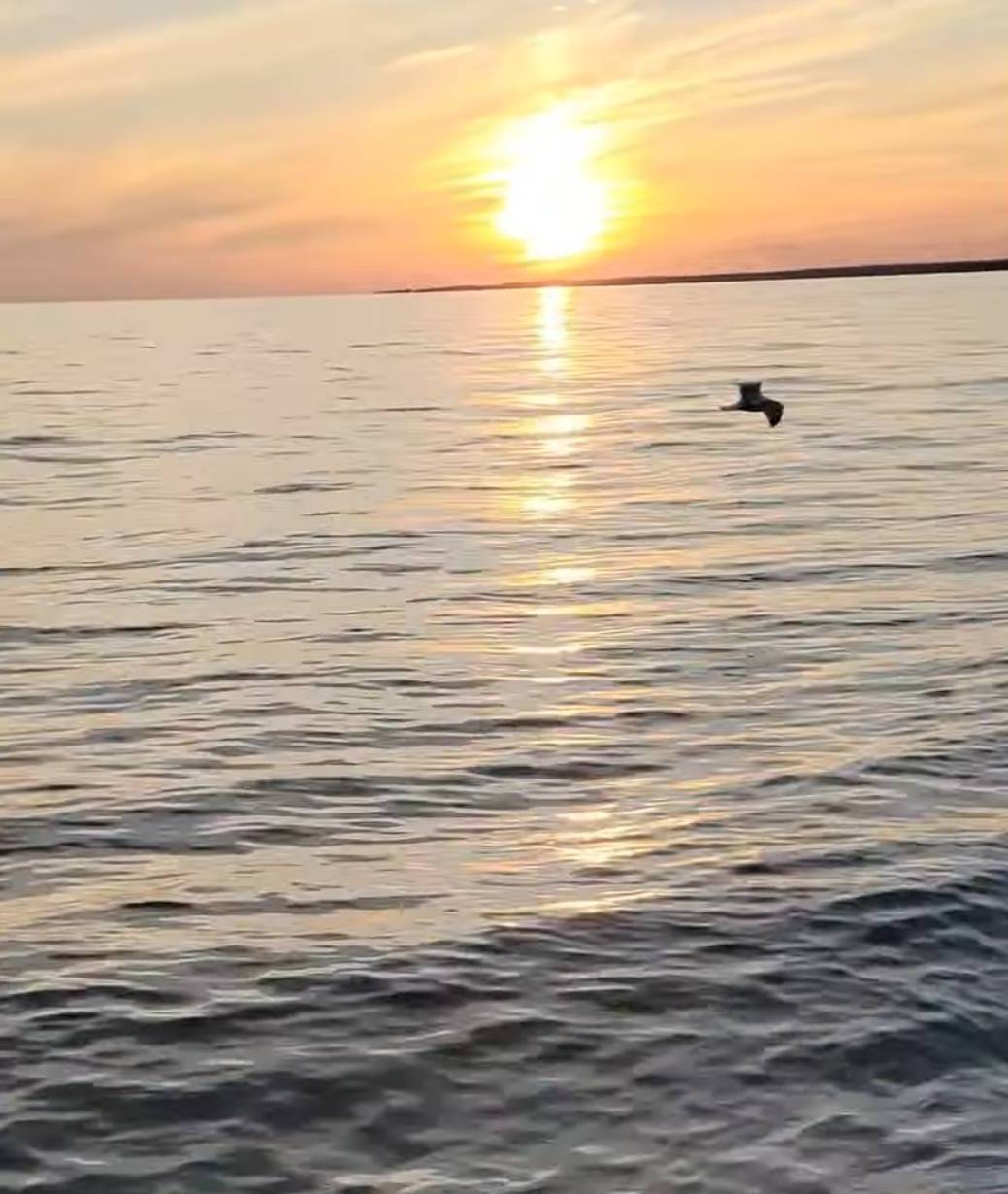 AI had honed in on the part of the video where we were already looking out at the sun setting + reflecting on the water, and captured the silhouette of a seagull gliding across the frame as we got a bit more of a look at the sun
