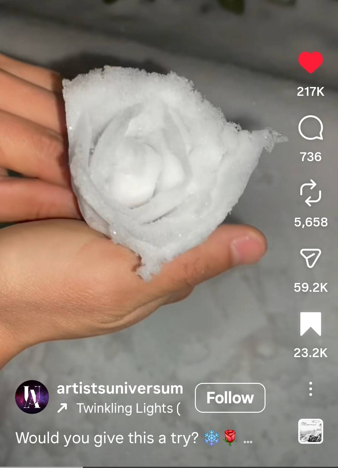 i saw a video on IG where someone formed a beautiful little rose from snow, and although i tried it, i wasn't super successful